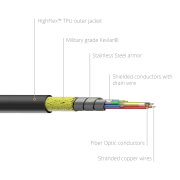 PRV220A to opancerzony, optyczny kabel HDMI 2.0, obsługujący sygnały o rozdzielczości do Ultra HD 4K 2160p (4096 x 2160) 4:4:4 przy 60 Hz z przepustowością 18Gb/s przez światłowód, co eliminuje zakłócenia elektromagnetyczne. Włókna kabla chroni wykonany ze stali nierdzewnej i kevlaru pancerz. W połączeniu z wytrzymałymi złączami z solidnymi osłonami, ten model kabla jest doskonale przystosowany do najcięższych zastosowań, jakie mogą spotkać go w dzierżawie i w drogownictwie.