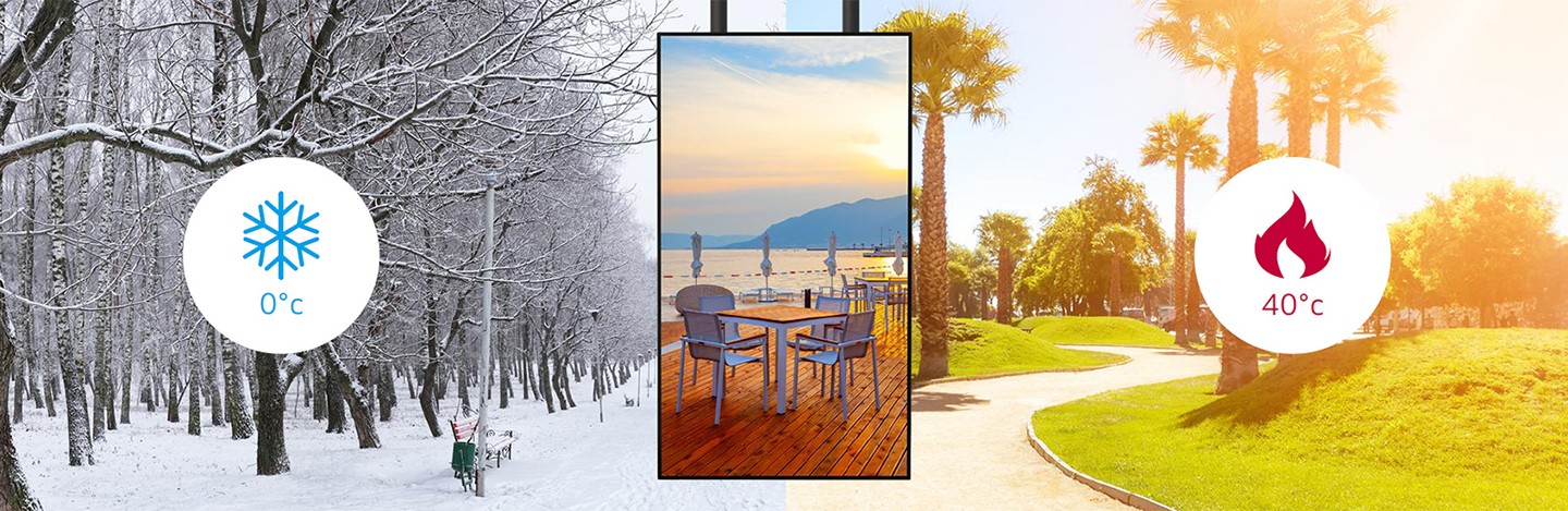 * Potwierdzone przez wewnętrzne testy LG, temperatura robocza: 0℃~40℃ (bez bezpośredniego nasłonecznienia; z bezpośrednim nasłonecznieniem w systemie chłodzenia), 0℃~30℃ (z bezpośrednim nasłonecznieniem)