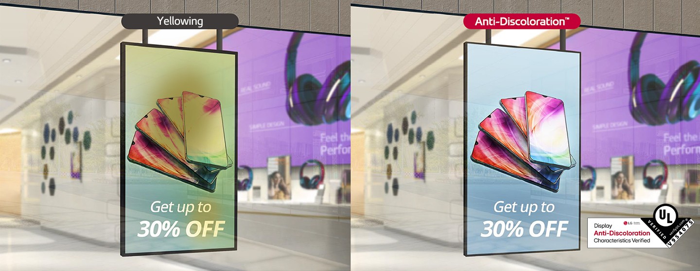 Pierwsza na świecie certyfikacja UL potwierdzająca odporność wyświetlacza na odbarwienia Koncentrując się na problemach naszych klientów, uzyskaliśmy pierwsze na świecie certyfikaty UL potwierdzające odporność wyświetlacza na odbarwienia. Nasza nowa technologia pomaga zapobiegać „żółknięciu ekranu”, jednocześnie zapewniając jakość wyświetlania i stabilność działania. |
