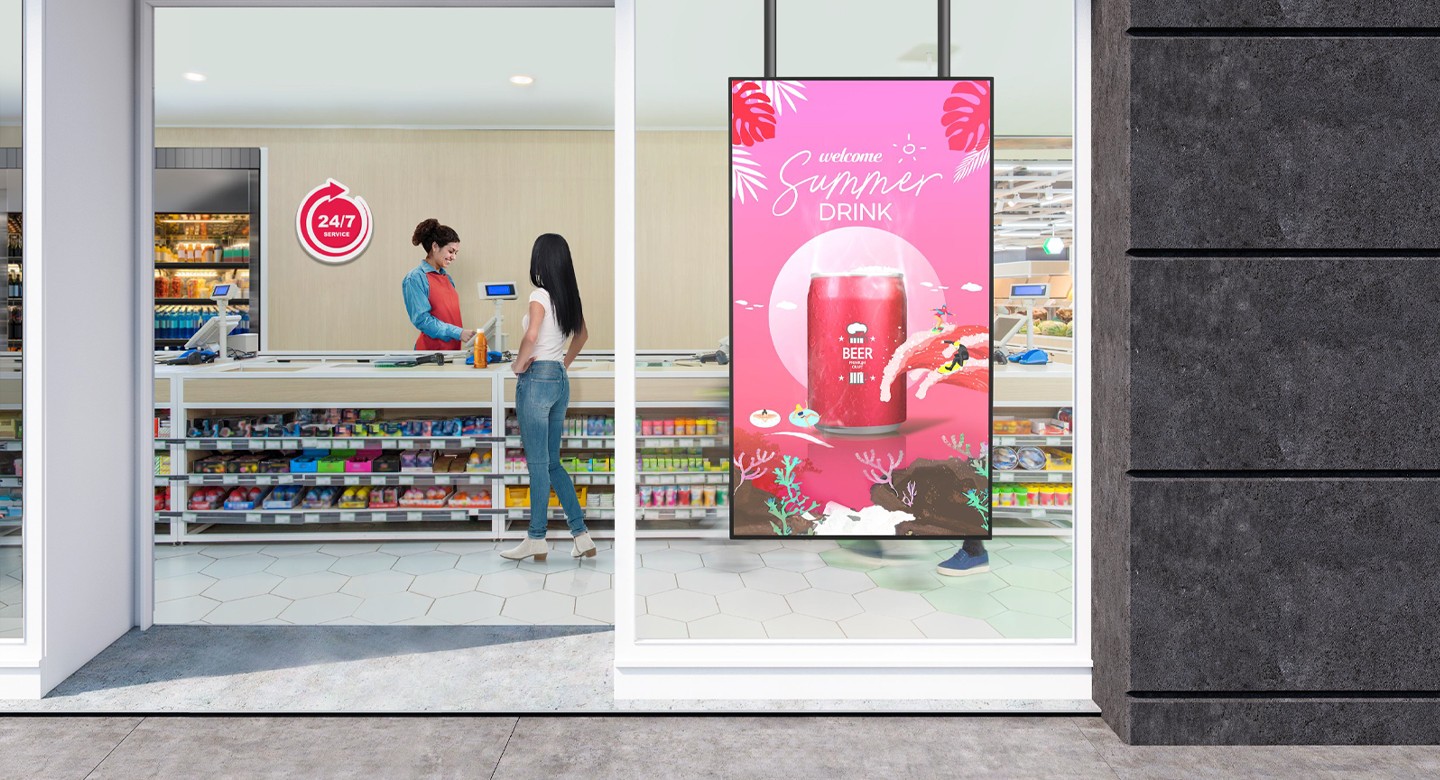 Zoptymalizowana konstrukcja pod kątem wykorzystania przestrzeni Dzięki kompaktowym rozmiarom i smukłej konstrukcji wyświetlacz XS4P skierowany w stronę okna płynnie integruje się z wnętrzem każdego sklepu. Jego ramka jest cieńsza niż w modelach konwencjonalnych, co umożliwia montaż bliżej okien i zapewnia klientom lepsze wrażenia wizualne. Dodatkowo standardowy wyświetlacz UHD można przymocować z tyłu XS4P, dzięki czemu może on funkcjonować jako wyświetlacz dwustronny. |