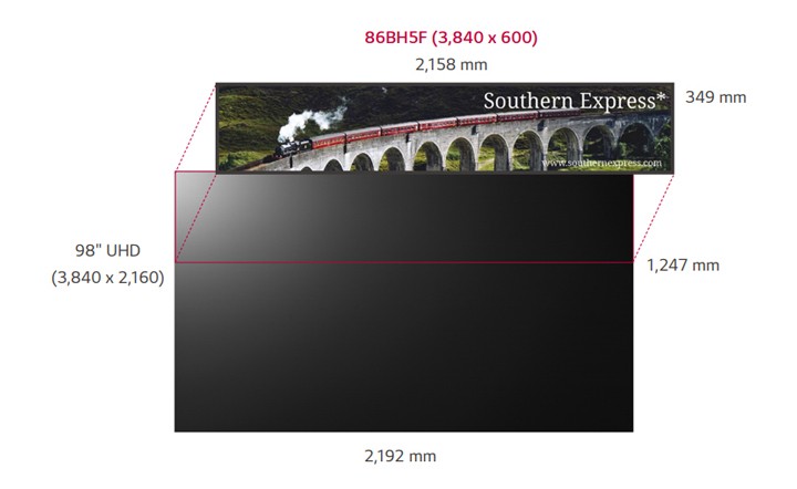 86-calowy wyświetlacz panoramiczny 86-calowy wyświetlacz LG Ultra Stretch nadaje się do wyświetlania nowych form reklam i informacji multipleksowych w formacie panoramicznym 58:9. |