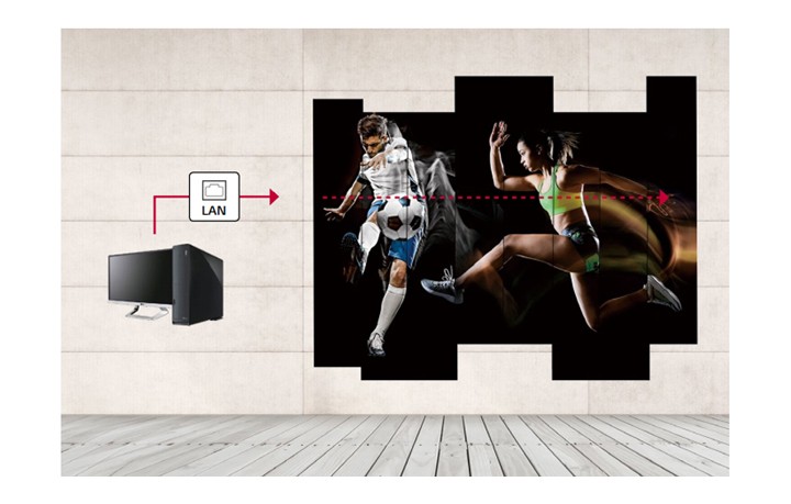 SKUTECZNE DOSTARCZANIE TREŚCI Kafelkowa scena z wciągającym widokiem Model 86BH5F może wyświetlać kafelkową scenę w konfiguracji do 15 × 15. Będzie to najlepszy wybór, jeśli chcesz korzystać z dużego ekranu lub zapewnić klientom wrażenia wizualne w inny sposób. |