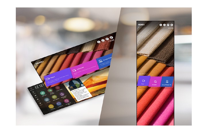 WYDAJNOŚĆ OPERACYJNA Przyjazny dla użytkownika interfejs Model LG 86" Ultra Stretch jest wyposażony w przyjazny dla użytkownika interfejs, który upraszcza przepływ danych, grupuje podobne funkcje i wykorzystuje intuicyjny graficzny interfejs użytkownika (GUI) dla łatwości obsługi. W przypadku korzystania z wyświetlacza w trybie pionowym można również odpowiednio dostosować menu ekranowe (OSD*).