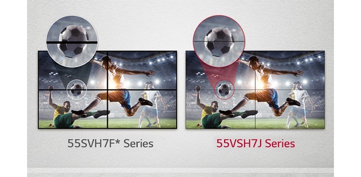 Redukcja różnic w obrazie Seria VSH7J zawiera algorytm poprawy obrazu, który może zredukować różnice w obrazie między wyświetlaczami kafelkowymi podczas odtwarzania filmów. Obiekty znajdujące się na krawędziach ramki są dostosowywane, aby zapewnić płynne wrażenia wizualne.