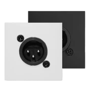 Płytka przyłączeniowa z męskim 3-stykowym złączem XLR w rozmiarze D, zaprojektowana do instalowania z elektrycznymi puszkami podtynkowymi dostosowanymi do akcesoriów w standardzie 45 x 45. Uwaga: instalowane bez lutowania moduły z rodziny CP45 nie pasują do puszek naściennych WB45.