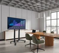 BT8564 V2 z serii Designer Trolley to eleganckie i nowoczesne rozwiązanie do montażu dużych ekranów w przestrzeniach biznesowych, edukacyjnych i eventowych. Charakterystyczna trójkątna kolumna nadaje konstrukcji stylowy wygląd, a jednocześnie zapewnia stabilność i funkcjonalność.