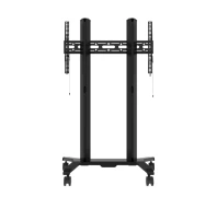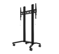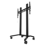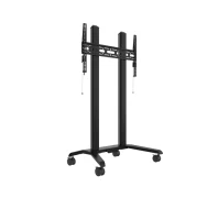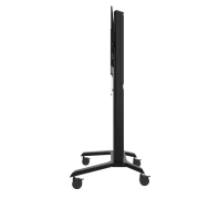 Wózek umożliwia montaż ekranów w orientacji poziomej lub pionowej. Zintegrowany system zarządzania kablami pozwala zachować estetyczny wygląd instalacji, a regulacja poziomu ekranu umożliwia jego precyzyjne ustawienie po montażu. Mobilność zapewniają kółka z blokadą, które nie pozostawiają śladów na podłodze. Do kolumny można także zamontować dodatkowe akcesoria, np. półki na sprzęt AV.
