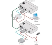 TP-580Rxr to wysokowydajny odbiornik HDBaseT o zwiększonym zasięgu do przesyłania sygnałów HDMI, RS-232 i IR 4K@60Hz (4:2:0) po skrętce. Rozszerza sygnały wideo do 100 m (330 stóp) przez kable miedziane CAT przy rozdzielczości wideo do 4K@60Hz (4:2:0) 24bpp i zapewnia jeszcze większy zasięg dla niższych rozdzielczości wideo HD.